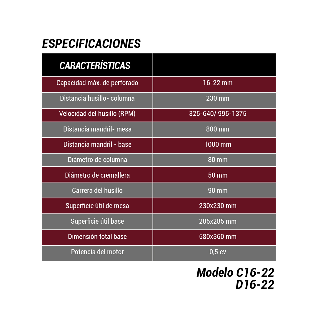 AGUJEREADORA DE COLUMNA CON MESA GIRATORIA MOD: C16-22 SIN MORSA