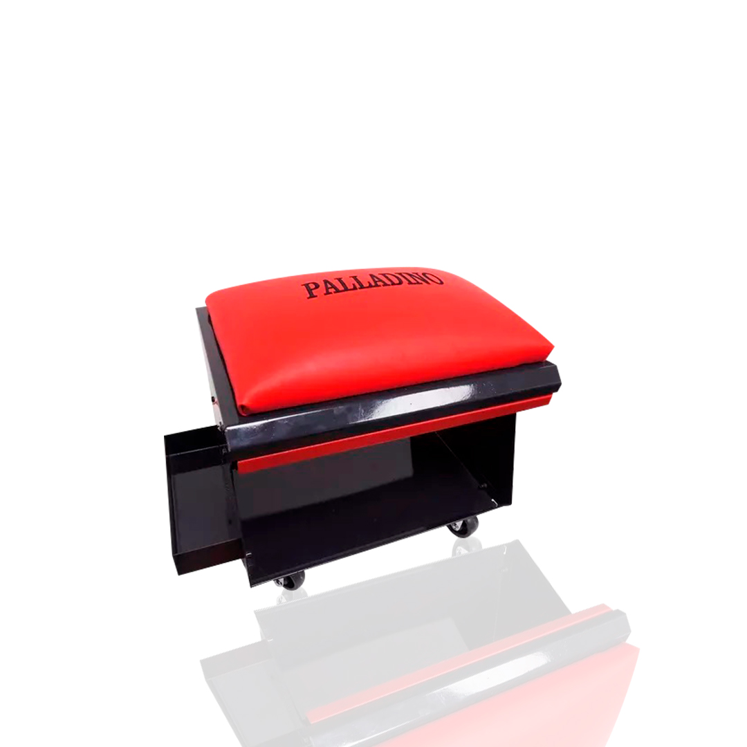 - El banquito para mecánico de Palladino, es el equipo que no debe faltar en el taller o espacio de trabajo. Cuenta con 4 ruedas giratorias, bandeja para herramientas, asiento tapizado y un cajón multifunciones.