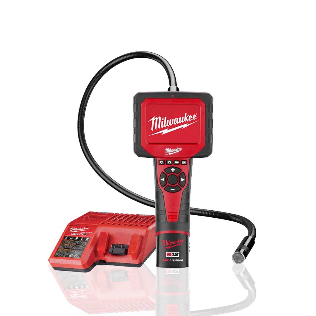 - La cámara Milwaukee cuenta con una pantalla giratoria que permite al usuario orientar la imagen sin tener que luchar contra el cable. Cuenta con un sensor de imagen digital 640×480 ofreciendo la mejor calidad de imagen de su clase sin sombras ni reflejos.