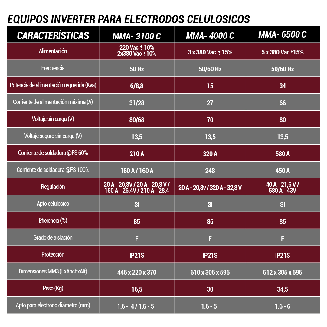 EQUIPO DE SOLDAR PARA ELECTRODOS CELULOSICOS MMA-3100 C