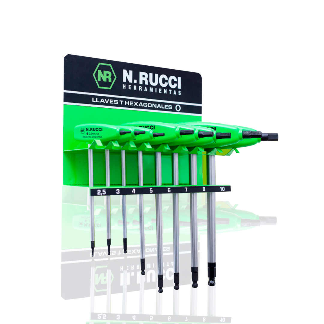 - Las llaves T Torx de N.Rucci son sinónimo de calidad nacional. En este juego de llaves se incluye un tablero para exhibir u ordenar las piezas.