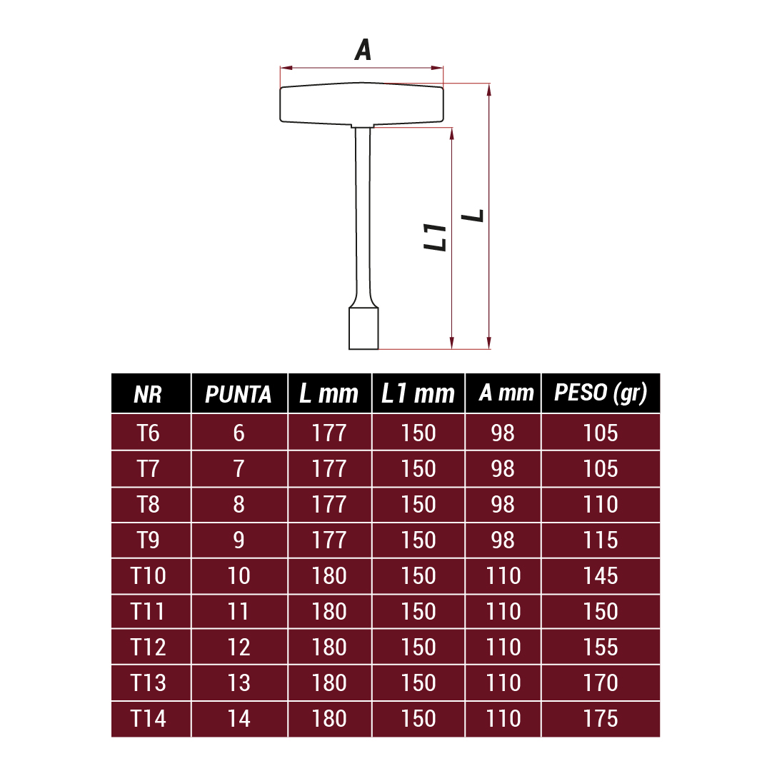 - MEDIDAS EN MM : T6 – T7 – T8 – T9 – T10 – T11 – T12 – T13 – T14.