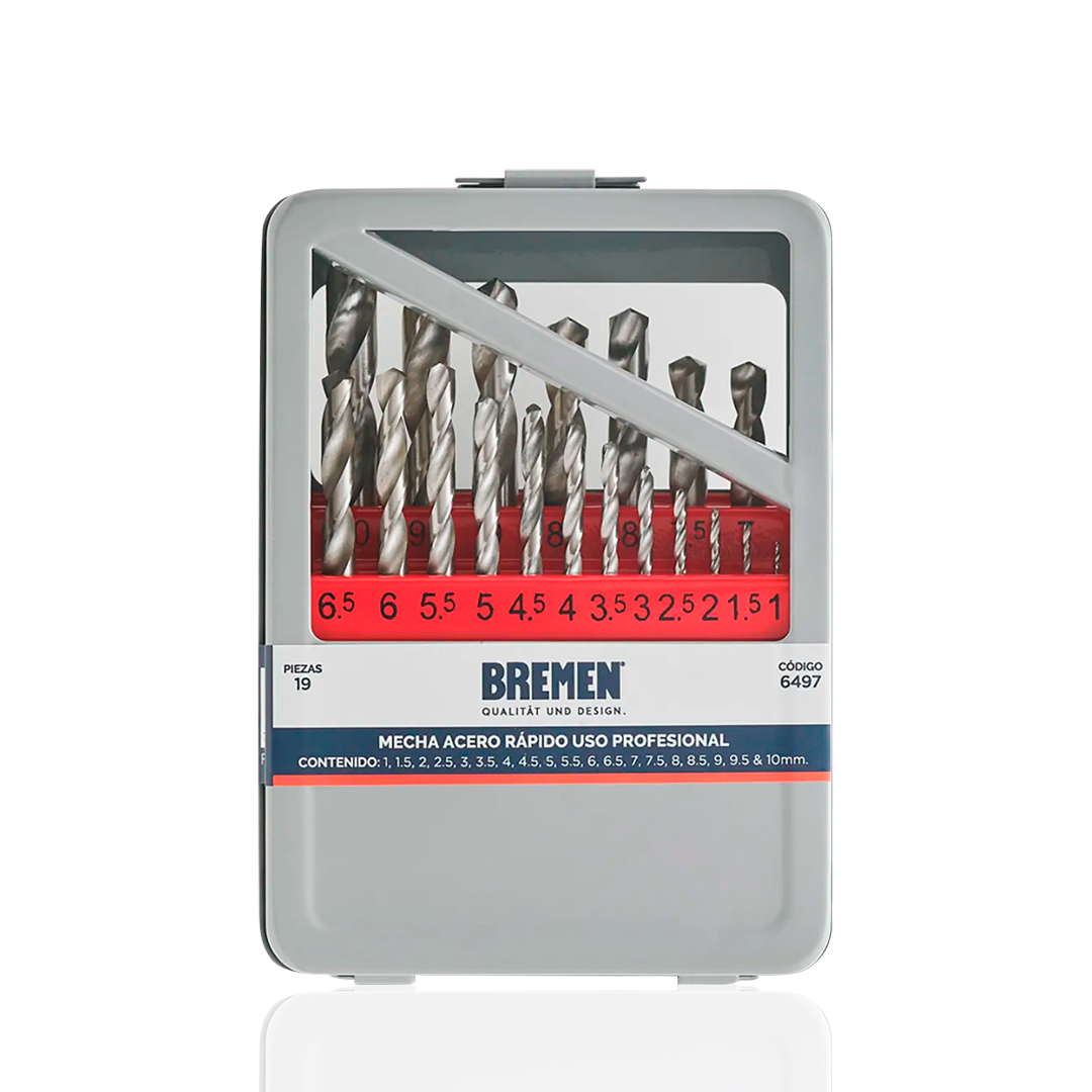 Las llaves combinadas BREMEN cumplen con elevados estándares internacionales de calidad, garantizando un excelente funcionamiento en los ambientes de trabajo más exigentes. El juego de mechas de acero rápido de BREMEN cuentan con filos destalonados para mayor precisión y velocidad de corte.